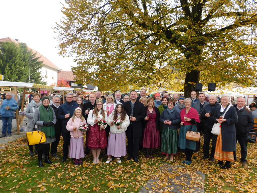 Begonnen hat der Tag mit einem Erntedankgottesdienst in der Lallinger Pfarrkirche, zelebriert von Kaplan Peter Bosanyi. Anschließend eröffneten Bürgermeister Michael Reitberger, Landrat Bernd Sibler und Mostkönigin Christina Eder den Markt vor zahlreichen Ehrengästen (s. Kasten). Der Bürgermeister dankte dem Kaplan für den schönen Erntedankgottesdienst und den Erstkommunionkindern für das Schmücken des Erntedankaltares. Reitberger hob dabei die Bedeutung eines Marktes mit heimischen Produkten hervor, die an diesem Tag an 94 Marktständen angeboten wurden. Auch das ILE-Heimatviertel war mit einem eigenen Stand mit regionalen Produkten vertreten.